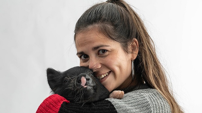 Julieta Demarco, que vive en el barrio porteño de Saavedra y es asistente en una empresa de informática, tiene dos cerdas de la raza mini pig llamadas Pochi y Cuba, que protagonizan las historias de la cuenta de Instagram @lapochivegana con la finalidad, además, de “concientizar” sobre la importancia de proteger a los animales.