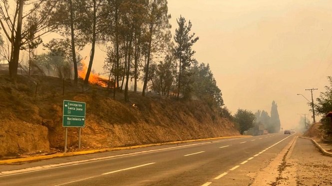 Incluso el tránsito por una de las carreteras principales que comunica a la ciudad de Concepción (510 km al sur de Santiago) debió ser restringido desde el jueves por la cercanía del fuego.