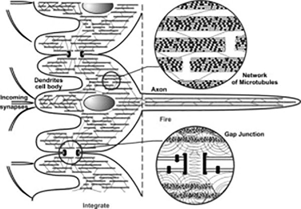 Sus conclusiones señalan que nuestras experiencias son el resultado de los efectos de la gravedad cuántica en los microtúbulos, un proceso al que llaman reducción objetiva orquestada (Orch-Or). La comunicación entre neuronas mediante la secreción de neurotransmisores se realiza a través de vesículas sinápticas distribuidas a lo largo de sus axones. El citoesqueleto de las neuronas juega un papel de suma importancia en la dinámica de estas vesículas. Hameroff y Penrose proponen que los microtúbulos, las unidades más pequeñas del citoesqueleto, actúan como canales para la transferencia de información cuántica responsable de la consciencia.