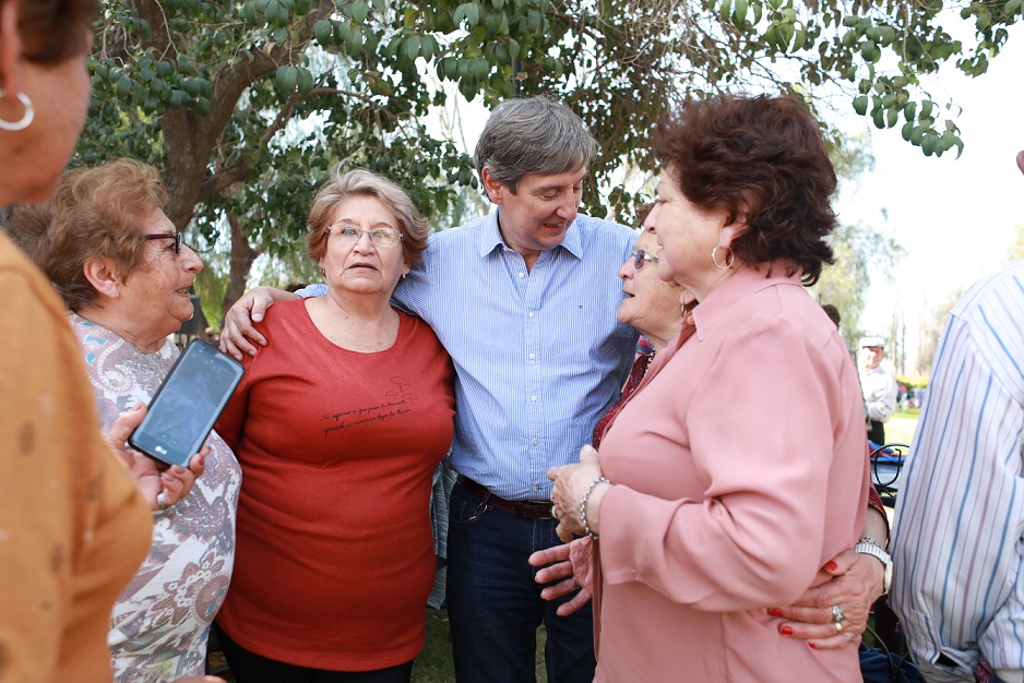 Uno de los momentos más especiales de la calurosa y soleada jornada, fue la sorpresiva llegada del Intendente de San Rafael, quien accedió a sacarse cientos de selfies y fotos con las abuelas y abuelos.
