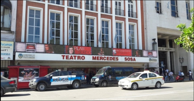 Efectivos policiales se encuentran desde hace algunas horas en las inmediaciones del Teatro Mercedes Sosa.