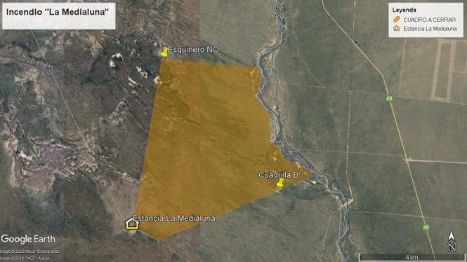 El Plan Provincial de Manejo del Fuego (PPMF) informó que, desde ayer, dos cuadrillas con equipos de ataque rápido combaten un incendio en la estancia Media Luna de General Alvear, en el límite con San Luis.