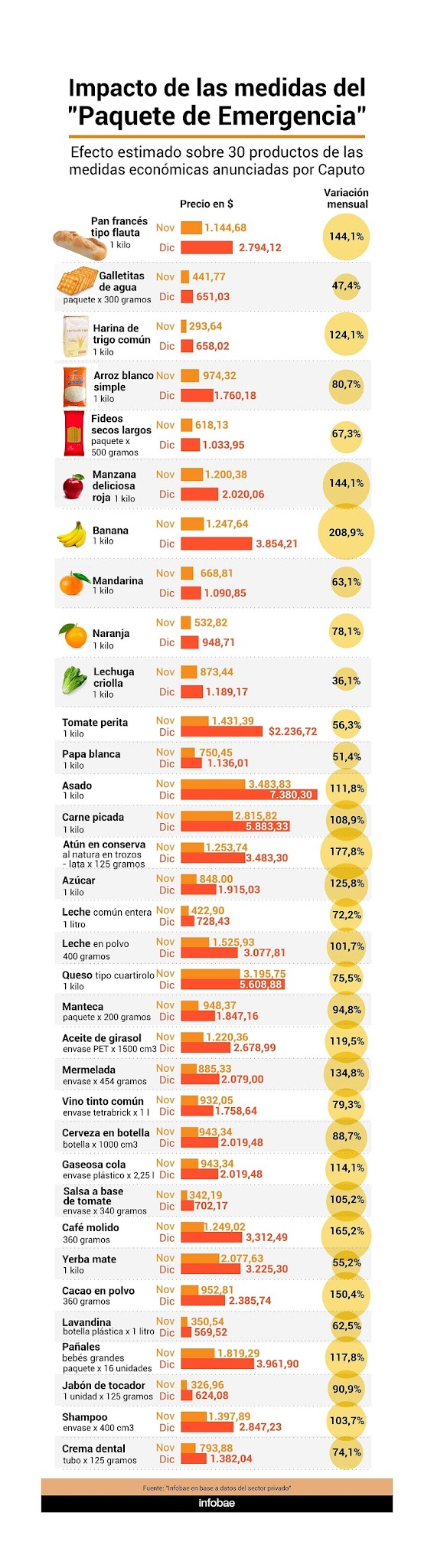 Cómo impactan las medidas económicas en los precios de 30 productos de consumo básico
