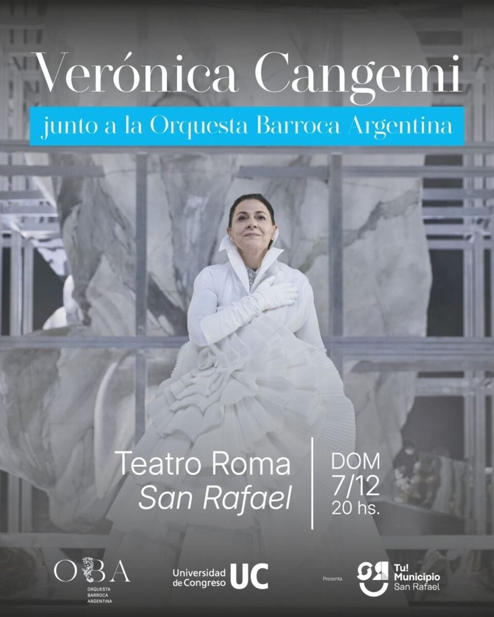 El próximo fin de semana, San Rafael volverá a recibir a una de las máximas exponentes de la música clásica argentina: Verónica Cangemi, que protagonizará un imperdible concierto acompañada de la Orquesta Barroca Argentina.