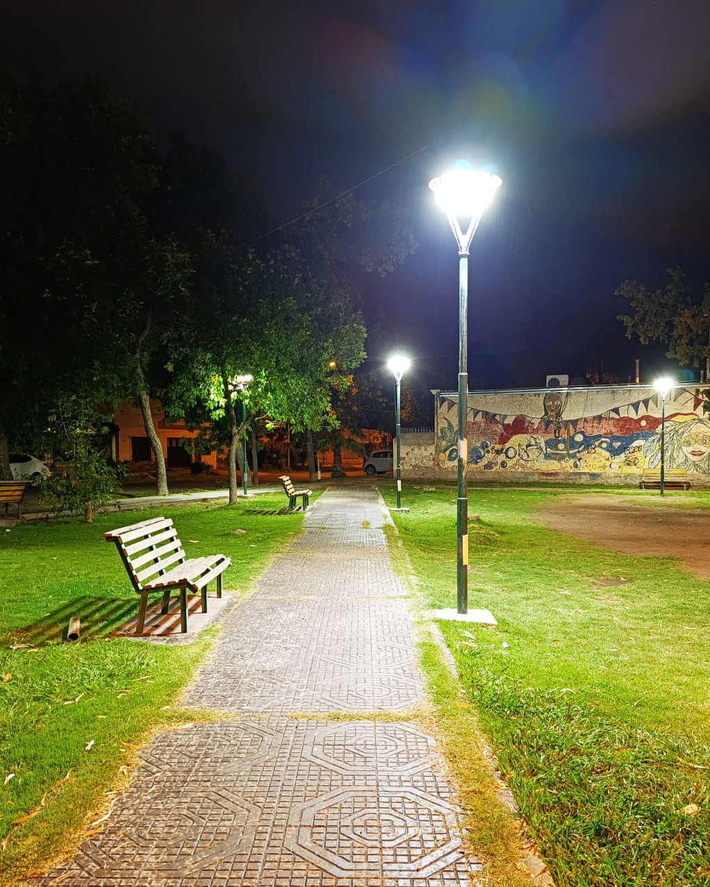 Gracias a esta importante inversión, la Plaza Bufano se encuentra completamente iluminada con tecnología led, mejorando la visibilidad y seguridad para todos los vecinos.