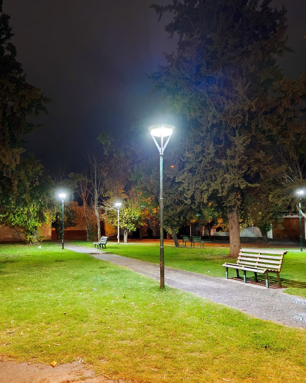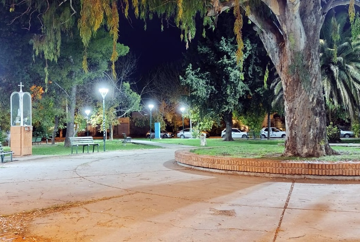 Un nuevo espacio verde de San Rafael cuenta con iluminación led: la plaza Alfredo Bufano.