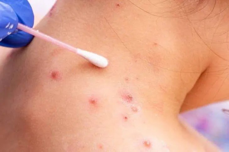 Los síntomas más frecuentes son fiebre, dolor de cabeza, muscular o de espalda, inflamación de ganglios y cansancio. Entre uno y cinco días posteriores se agrega erupción en la piel, que pasa por distintos estadios hasta formar una costra que luego se cae. Las personas infectadas contagian hasta que se hayan caído todas las costras.