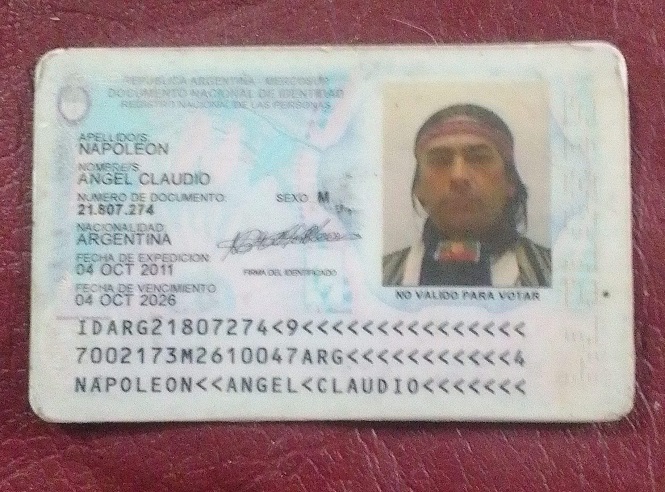 Nehel Mapu Leou, posee también DNI argentino bajo el nombre Ángel Claudio Napoleón, pues llevó a cabo los trámites de ciudadanía. Para referirse a sus raíces expresó: “En esta zona (sur mendocino), existieron y existimos aún como pueblo mapuche”. En palabras originarias, el entrevistado se presentó y dejó primeramente saludos a las autoridades ancestrales de su pueblo y a quienes escuchen, teniendo en cuenta que “hay un sentimiento puro, de corazón a esta madre y padre tierra”. “Mi nombre en mi documento de identidad es Ángel Napoleón, ya que no voy a dejar de reconocer que tengo un bisabuelo siciliano, el cual no sé ppor qué tuvo dos hijos con una mujer mapuche, doña Juana Poblete, la ‘viejita de los frascos’ más bien conocida en la zona porque mi se caracterizaba porque aparte de vender frasquitos en la puerta del hospital antiguo que se usaba para los análisis, también vendía hierbas medicinales. Había otras abuelas que sólo vendían frasquitos. Me enorgullece ser nieto de esa mujer porque es una mujer que no mendigó, sino que trabajó humildemente para criar a sus dos hijos, y que cuando su pareja la abandonó y se fue de vuelta a Italia se quedó con dos varoncitos aquí, uno rubio con más parecido al padre y el otro moreno, con pelo más oscuro, más parecido a la madre y yo vengo de la línea del de pelo más oscuro. Reconozco que soy mestizo, pero mi línea familiar es mapuche.