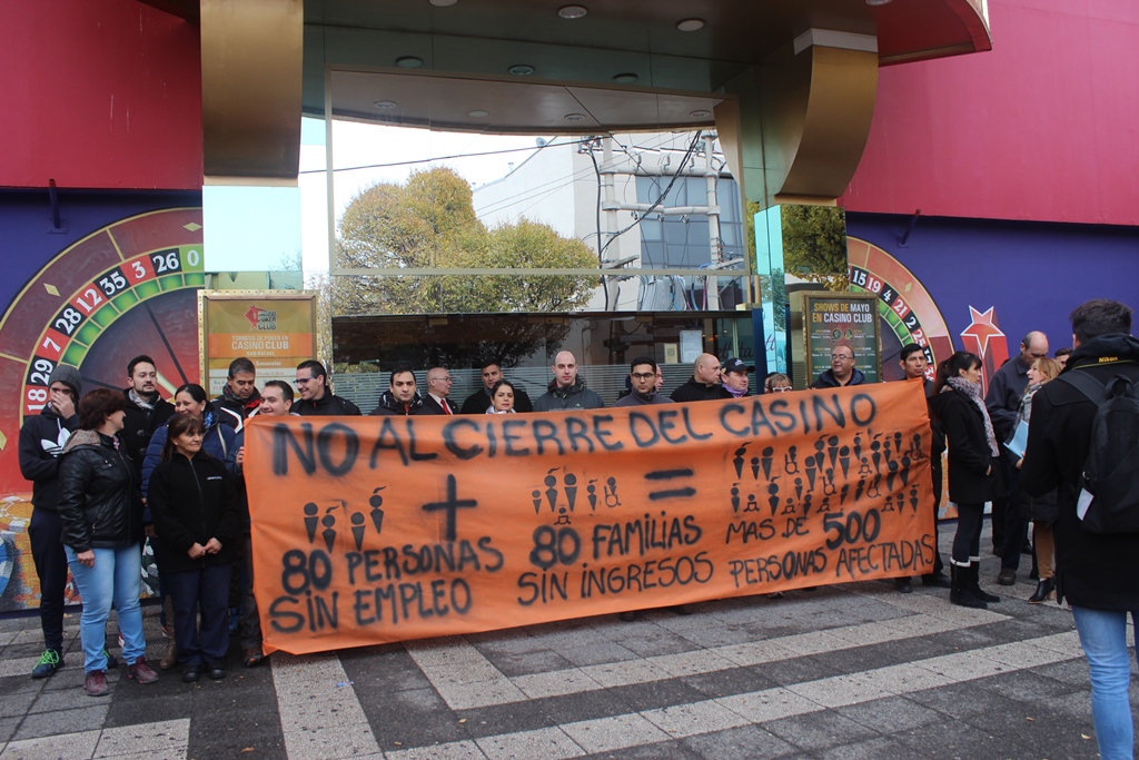 Los trabajadores del Casino Club se manifestaron en las puertas de la empresa ubicada en calle Emilio Civit, y solicitaron una solución ante la problemática laboral que están viviendo debido al inminente cierre de la sala, debido a que este año termina la licencia, tras 20 años de existencia de la misma y que desde el Gobierno de Mendoza se niegan a una prórroga de la misma.