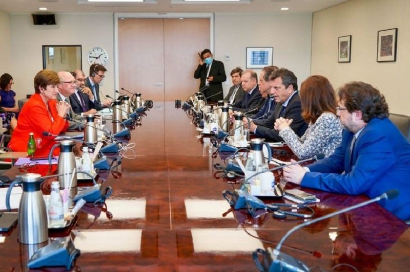 El presidente Alberto Fernández reveló este viernes que mantuvo un diálogo telefónico con la titular del FMI Kristalina Georgieva, y afirmó que en el gobierno están “trabajando a todo vapor tratando de alcanzar un acuerdo”, en tanto en Washington continuaban las negociaciones de la delegación del Palacio de Hacienda con los técnicos del organismo multilateral.