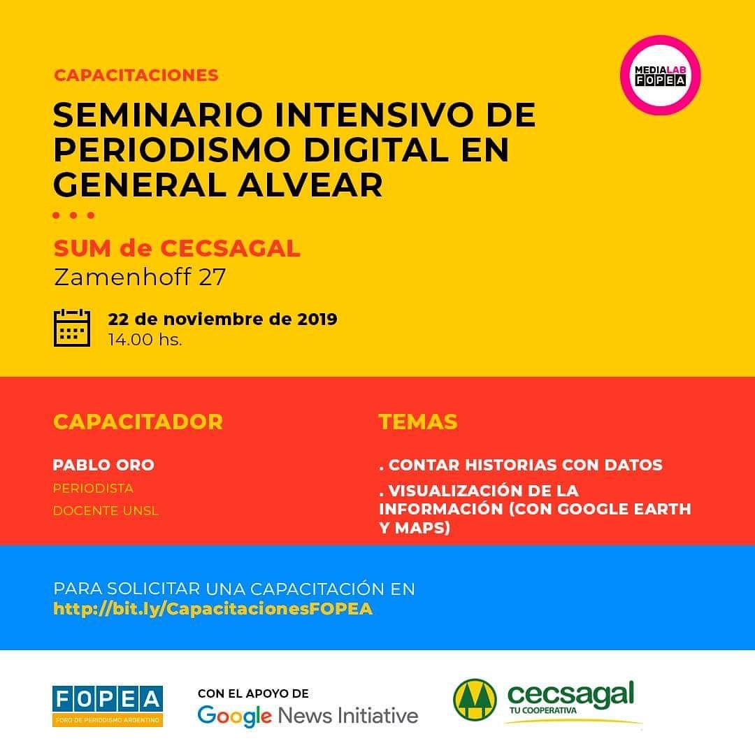 Esta iniciativa cuenta con el apoyo de Google News Initiative , un proyecto global que busca potenciar la innovación en las redacciones periodísticas. En congruencia, el Foro de Periodismo Argentino (Fopea) lanzó la Red de Capacitaciones Digitales con un grupo de socios profesionales que recorrieron a lo largo y ancho de todo el país capacitaciones gratuitas durante todo 2019. En todos los casos, estuvieron destinados a periodistas y enfocados a diversas herramientas con el objeto de facilitar y potenciar el trabajo en las redacciones argentinas.