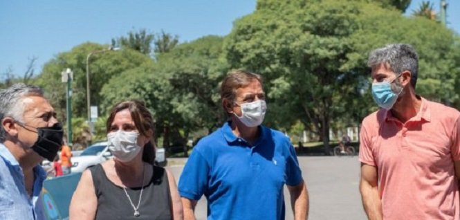Cornejo se mostró con el gobernador en el Parque Gral. San Martín.