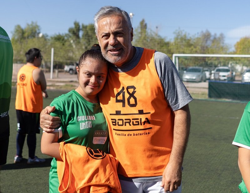 En un campo deportivo del departamento de Godoy Cruz se reunieron el Gobernador, el intendente de Ciudad, Ulpiano Suarez, y el jefe comunal de Godoy Cruz, Diego Costarelli; junto a Rodrigo Herrera, subsecretario de Trabajo, y Federico Chiapetta, subsecretario de Deportes, quienes fueron invitados por los responsables de la liga Empate para compartir un picadito de fútbol y conocer a los deportistas. Se trata de la primera liga de futsal mixto para personas con síndrome de Down de la provincia.