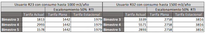 En las estimaciones puede observarse como un usuario de consumos medios reduciría su factura del periodo invernal sustancialmente sumando el efecto del prorrateo de la tarifa más el nuevo escalonamiento de la RTI.