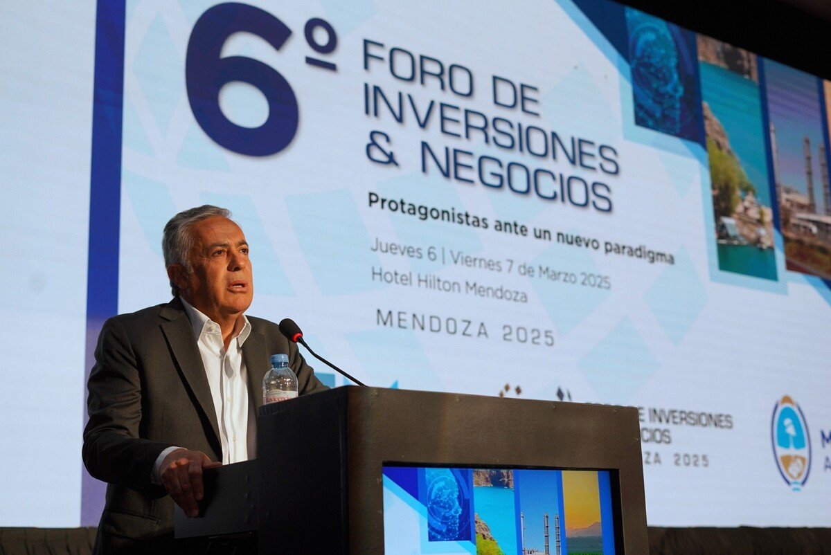 El gobernador Alfredo Cornejo participó este jueves en el 6° Foro de Inversión y Negocios organizado por el Consejo Empresario Mendocino (CEM), donde compartió escenario con el ministro de Economía de la Nación, Luis Caputo. Durante el evento, se refirió al proceso electoral que se aproxima y manifestó su respaldo a la gestión de Javier Milei, expresando su deseo de que el oficialismo triunfe en los próximos comicios de medio término.