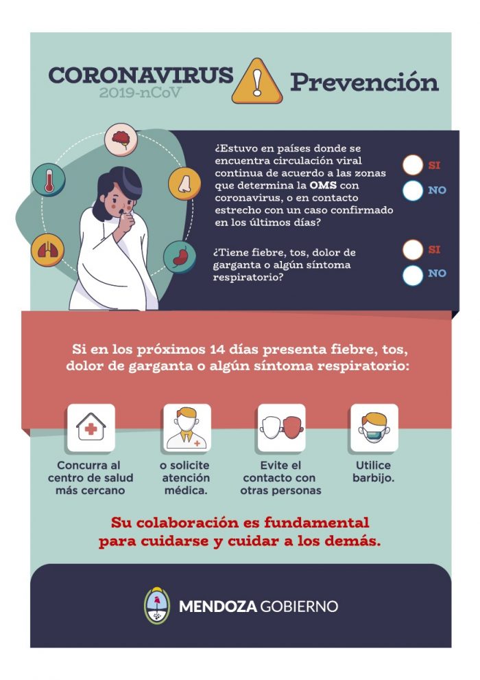 Luego Suarez informó que “se trata de un joven de San Rafael que venía de Italia con escala en Santiago, desde el aeropuerto totalmente asintomático. Prudentemente, concurrió a un médico y de ahí se lo derivó al Schestakow, donde se activaron los protocolos y se están haciendo los análisis correspondientes para descartar cualquier enfermedad, incluido el coronavirus”.