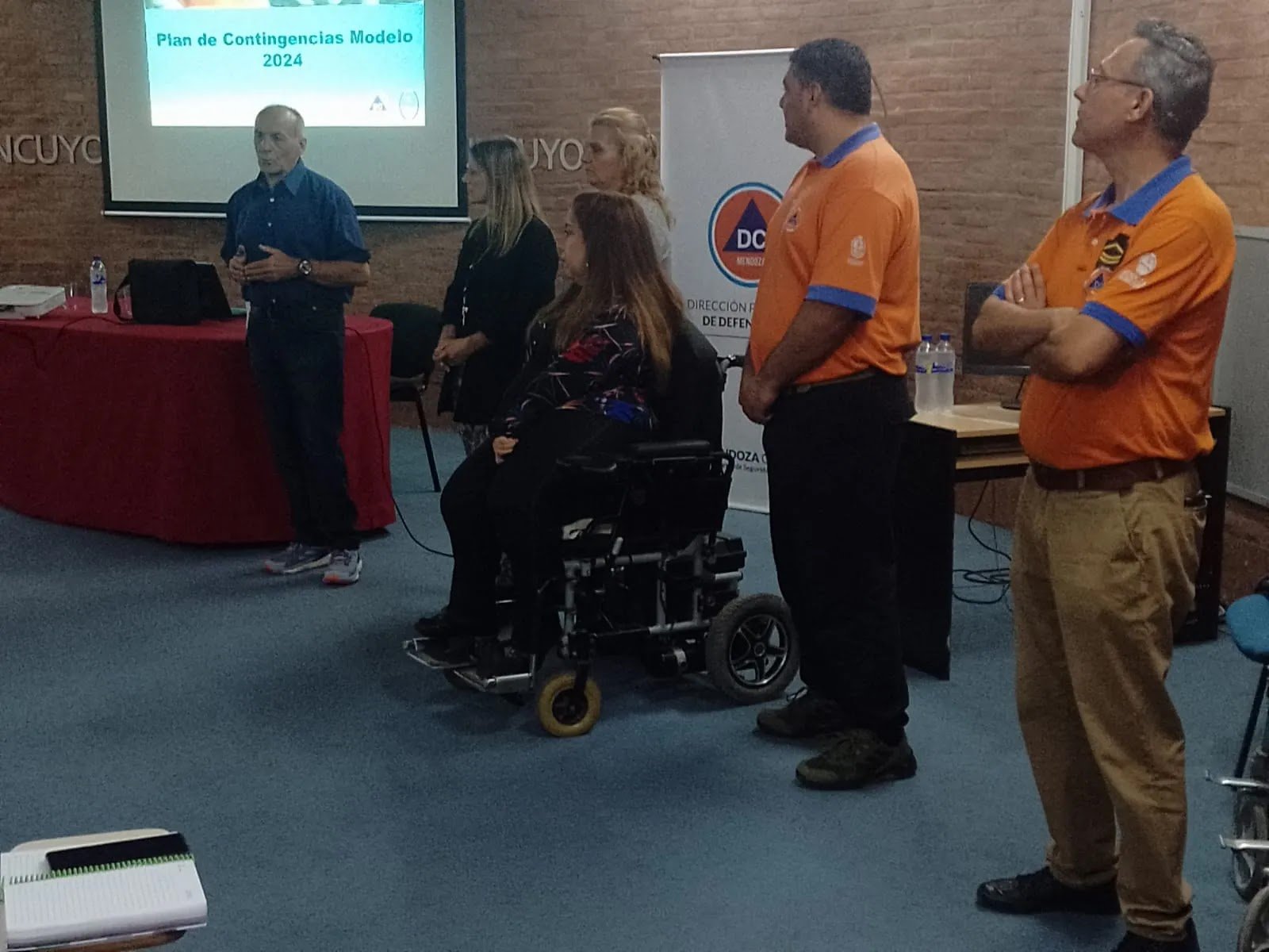 Como parte del Plan de Contingencias 2024, más de 70 personas participaron en una jornada de capacitación desarrollada en el Auditorio Cilindro Sur del CICUNC, en la Universidad Nacional de Cuyo. El taller, organizado por la Dirección de Defensa Civil, se centró en el Protocolo de evacuación para personas con discapacidad (Anexo IV), abordando la atención a personas con diversas discapacidades en situaciones de emergencia.