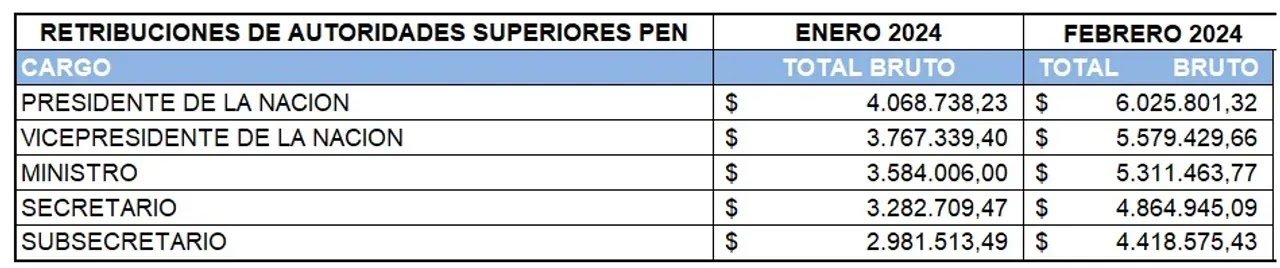 “Aumentó un 48% entre enero y febrero”, respondió en la misma publicación, que acompañó con un cuadro donde puede verse el aumentó que tuvieron los salarios del Ejecutivo en ese período.