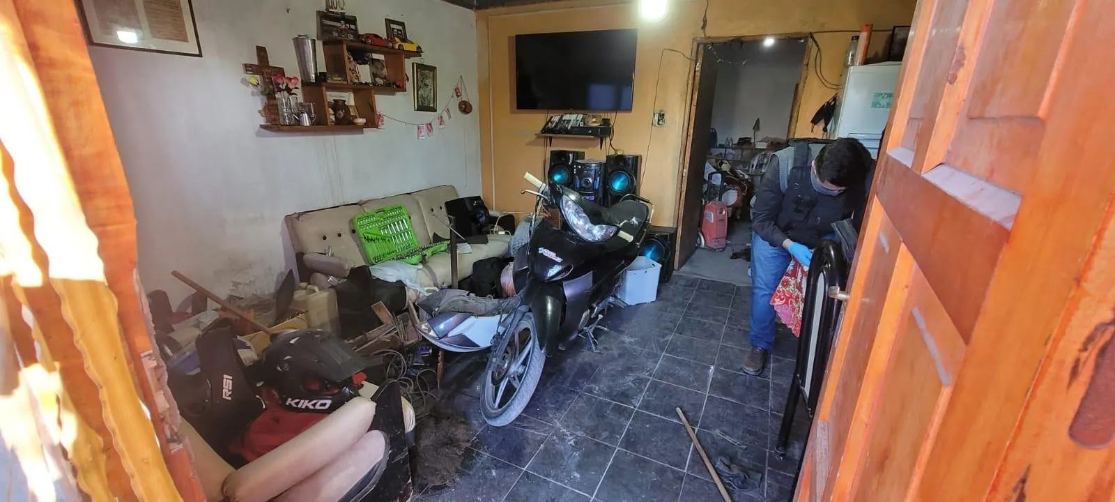 Otro allanamiento fue realizado en calle Reconquista al 100 en una vivienda sin moradores y sin medidas de seguridad, se logró el secuestro de varias motopartes. En calle El Toledano S/N, en la zona de Las Paredes, se secuestraron varias motopartes, dos teléfonos celulares y se aprehendieron a dos hombres que fueron trasladados a la Comisaría 60.