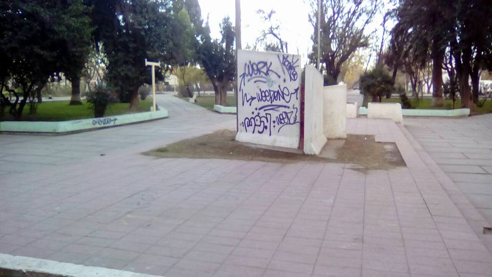 La verdad que no vemos la necesidad de hacer esto, banco roto, nuestro monumento totalmente rayado y como si no bastará que tuviéramos que poner las luces en una altura inalcanzables para que no pudieran romper los focos con facilidad , no lograron su objetivo y se robaron los cables de la luz, esto fue verificado hace una rato cuando acudieron a verificar porque las luces estaban apagada”.