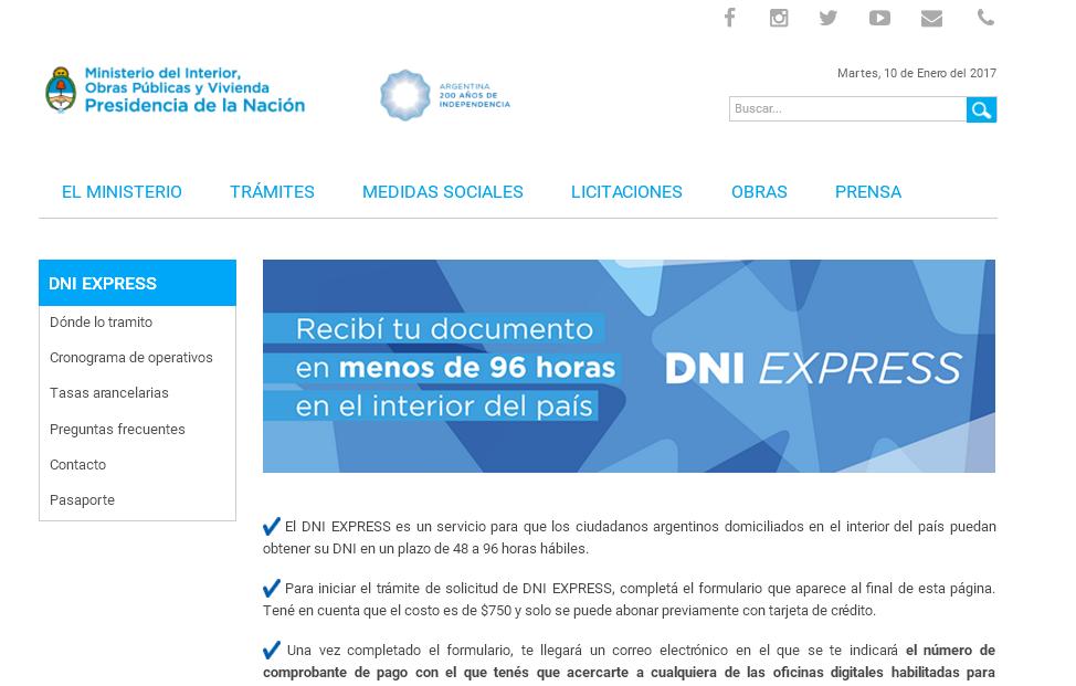 La Dirección Nacional de las Personas (Renaper), a través de la resolución Nº 1 /2017, puso en funcionamiento el nuevo servicio del documento nacional de identidadexpress, que permite la obtención del DNI a los ciudadanos nacionales en territorio argentino.