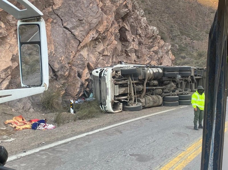 Minutos más tarde, en el kilómetro 1106 de dicha ruta, donde se encuentra la conocida como Curva Guido, un Scania también brasilero volcó en solitario. No hubo heridos.