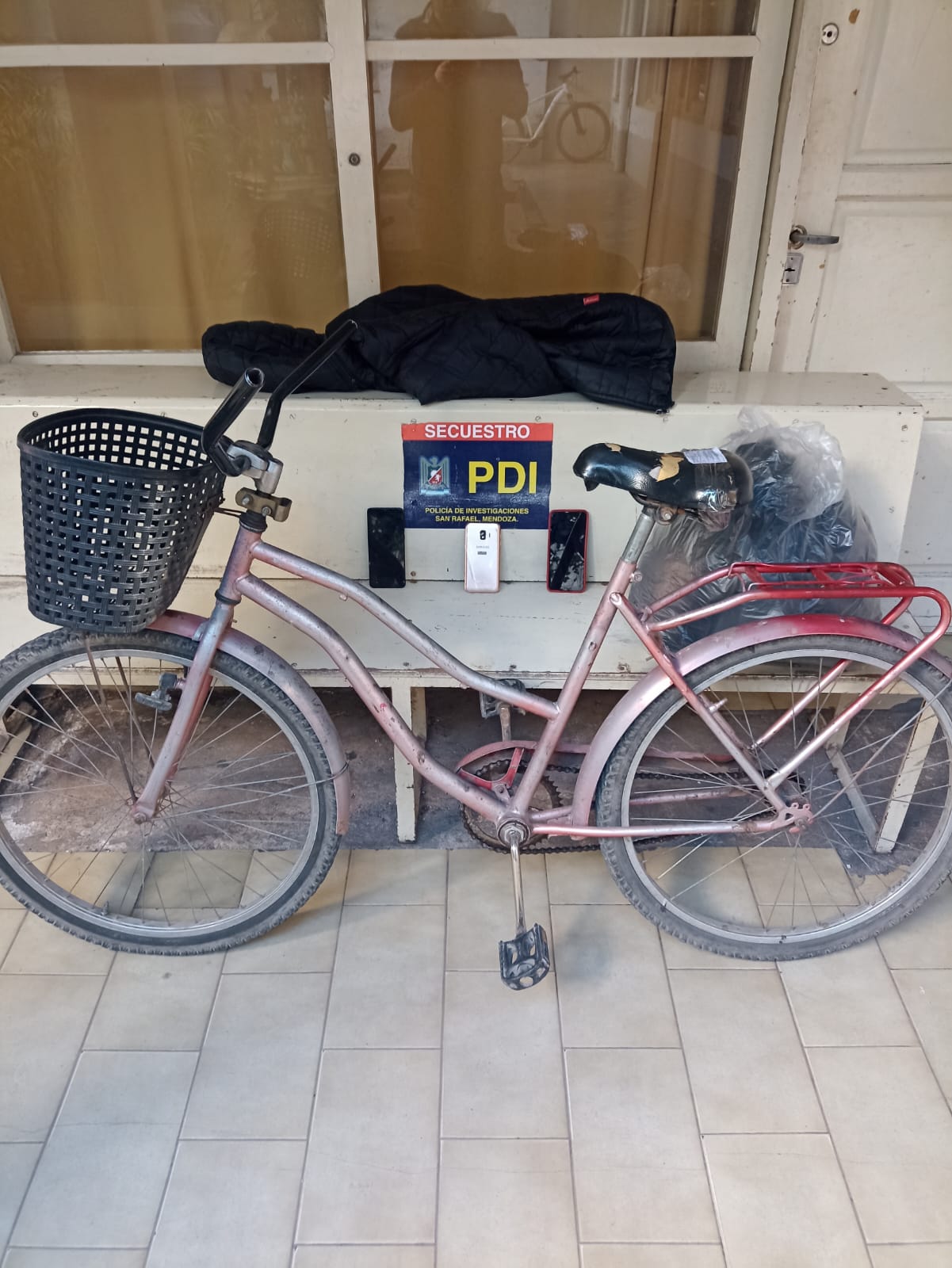 En el lugar, se incautó una bicicleta tipo playera, que se presume fue utilizada para cometer el delito. También se secuestró una campera de abrigo marca Cacique, un par de guantes de polar y un cuellito de polar.
