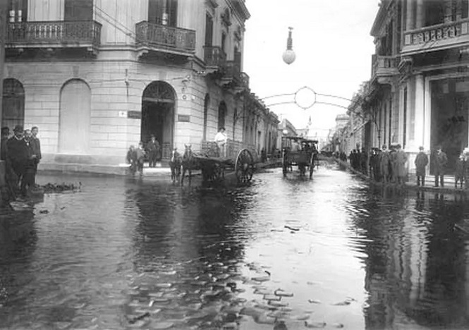 En una fecha como ésta, el caudal del río Paraná alcanza los 6.55 metros de altura e inunda a la ciudad de Santa Fe.