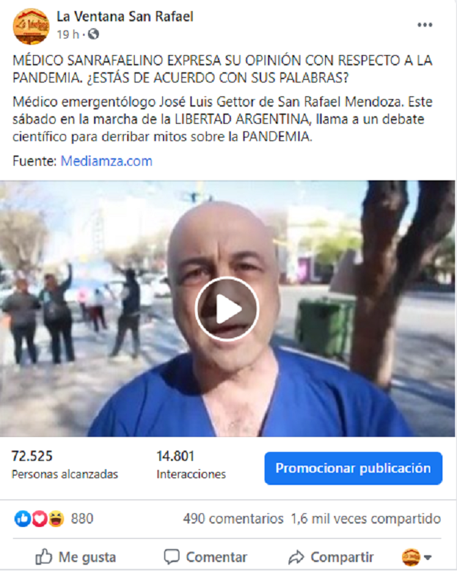 Muñoz expresó al respecto al ser consultado por Lv4 Radio San Rafael, “hay profesionales que hablan sin haber pisado nunca el hospital” y agregó “está bueno que a esta altura estén dudando que el Covid exista, porque la gente que no crea en el Coronavirus ya tiene un médico que los trate como si no existiera”.
