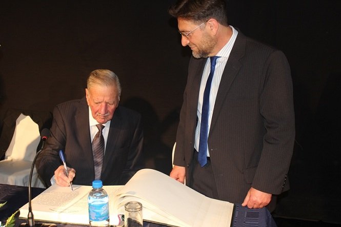 El doctor Garino Arias tras recibir la estatuilla y su diploma, firmó el libro de actas donde anualmente firman todos los ciudadanos ilustres de San Rafael.