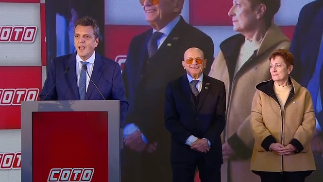 Acompañado de Coto en el discurso de hoy, Massa se tomó un tiempo para elogiar al dueño de la cadena de supermercados.”Fue el primero, junto a otro empresario también argentino, en venir a plantear la necesidad de los acuerdos de precios para tratar de garantizar abastecimiento en el sector del supermercadismo, que creció casi 14 puntos desde que tiene el programa de Precios Justos porque lo cumple”, contó.