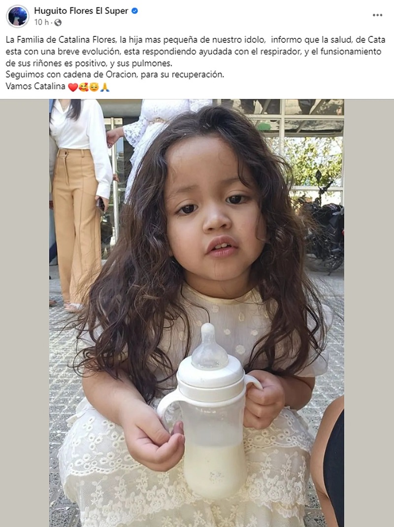“La familia de Catalina Flores, la hija mas pequeña de nuestro ídolo, informo que la salud de Cata está con una breve evolución”, comenzó el comunicado que realizaron a través de la cuenta de Facebook del cantante.