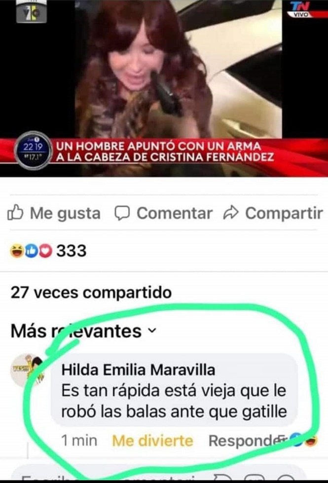 Más allá del escepticismo y la militancia, no faltaron tuiteros que hicieran humor y burla con el incidente, y se cebaron con el atacante y con el dispositivo de seguridad de Cristina Fernández.