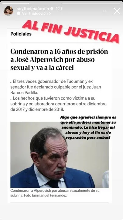 El ex gobernador de Tucumán, José Alperovich fue condenado a 16 años de prisión e inhabilitación para ejercer cargos públicos, tras ser acusado de perpetrar nueve hechos de abuso sexual contra su sobrina y ex asesora.