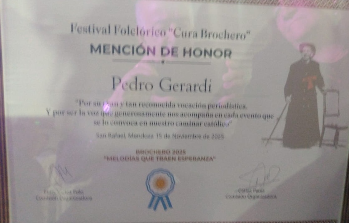 El Festival Cura Brochero reconoció la destacada trayectoria del periodista Pedro Pablo Gerardi, figura clave en los medios del sur mendocino y referente por su compromiso social, profesional y religioso.