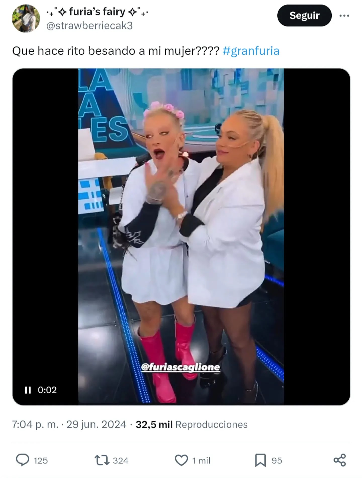 Sin embargo, hubo quienes apoyaron este encuentro entre ambas. “Adoro este crossover inesperado”, dijo una persona en la mencionada red social. “Mujeres del espectáculo”, “La chapó” y “No sé si quiero ser la Ritó para besar a Furia o ser Furia para besar a la Ritó”, fueron otras de las reacciones.