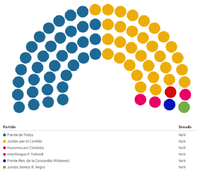 El bloque oficialista del Frente de Todos será desde el próximo 10 de diciembre la primera minoría en el Senado de la Nación, de acuerdo con el resultado de las elecciones legislativas para renovar a un tercio de las bancas en la Cámara alta, que representan a las provincias de Corrientes, Catamarca, Córdoba, Santa Fe, Chubut, La Pampa, Tucumán y Mendoza.