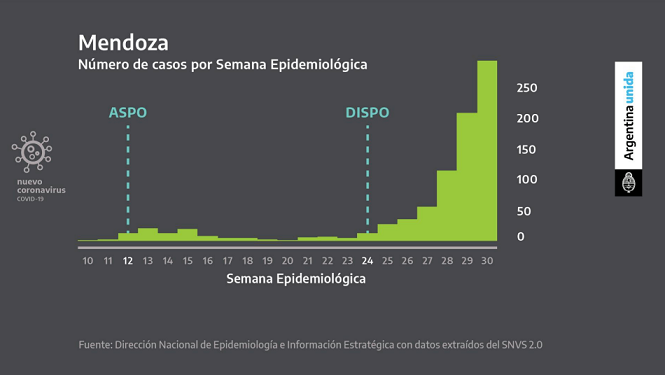 Alberto Fernández en el día de ayer puso como ejemplo a la provincia de Mendoza diciendo “Miren lo que pasó en Mendoza cuando hubo cuarentena y lo que pasó cuando se liberó”, al señalar el gráfico con la suba importante de contagios que atraviesa nuestra provincia en la etapa de distanciamiento social, preventivo y obligatorio.
