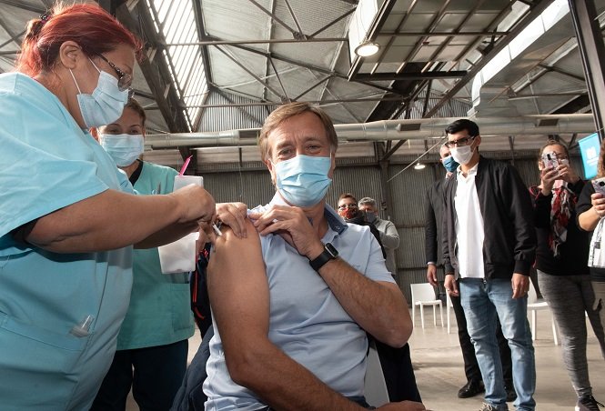 El Gobernador sacó el turno el domingo luego de que se habilitara la inscripción para las personas mayores de 55 años sin comorbilidades y fue inoculado con la AstraZeneca en la Nave Cultural.