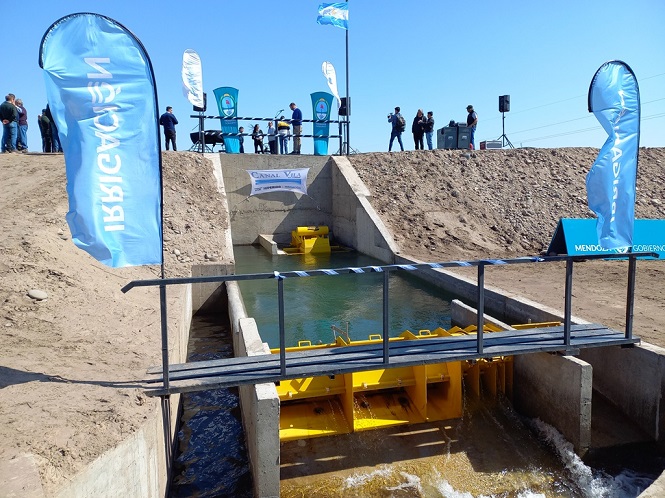 Luego de más de 300 días sin pisar el departamento, este miércoles fue inaugurado por el gobernador Rodolfo Suárez y el superintendente general de Irrigación, Sergio Marinelli el reservorio de agua del canal Vila, que implicó una inversión de 73 millones de pesos. Es una obra que permite acumular millones de litros de agua del río Diamante para regar casi mil hectáreas.
