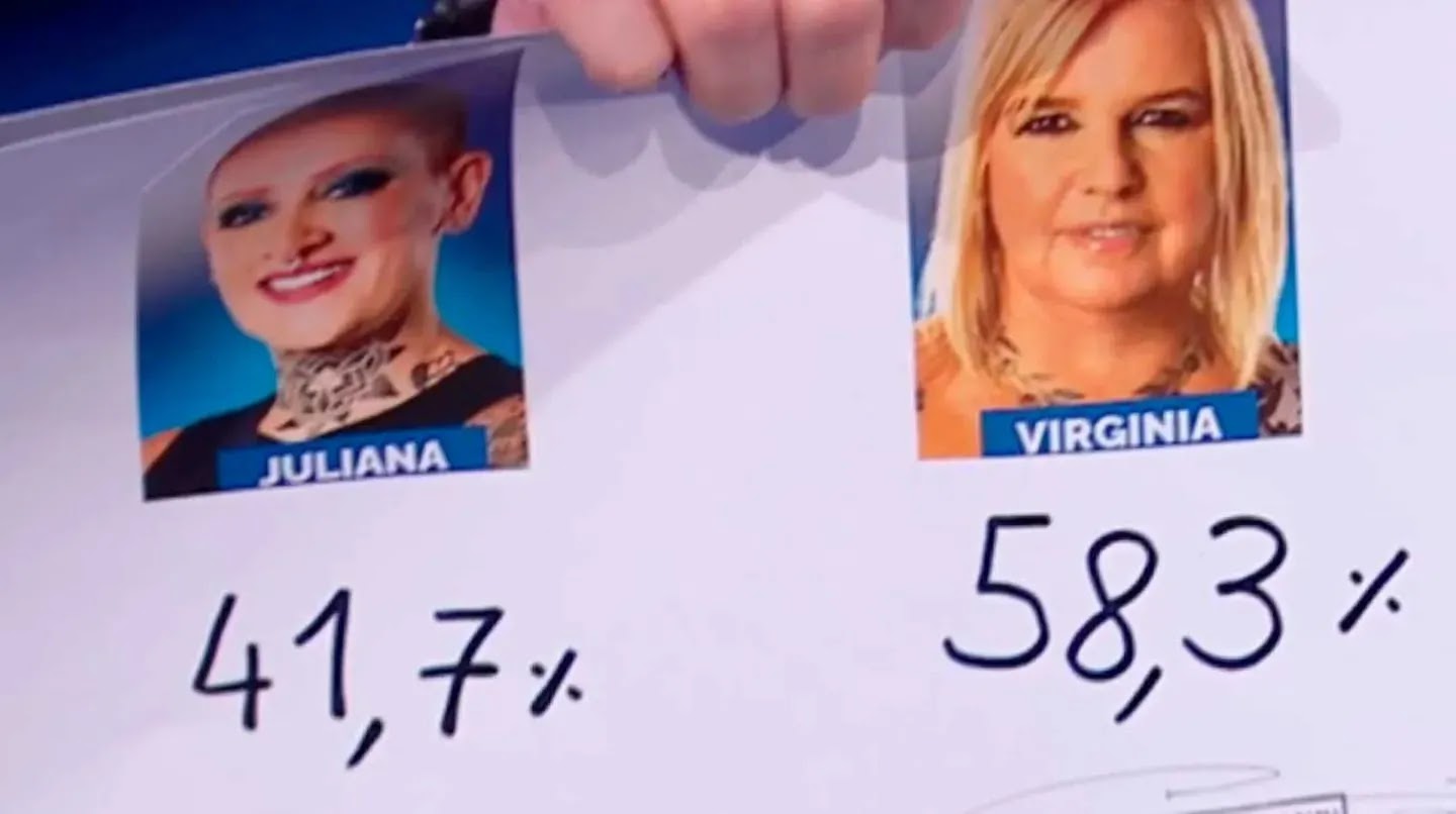 Virginia Demo tuvo el 58.3% de votos en contra, mientras que Furia obtuvo el 41.7%. “Hubo más de 7 millones de votos”, aseguró el Santiago del Moro al contar la fuerte participación que tuvo la audiencia del ciclo que ya está en su recta final.
