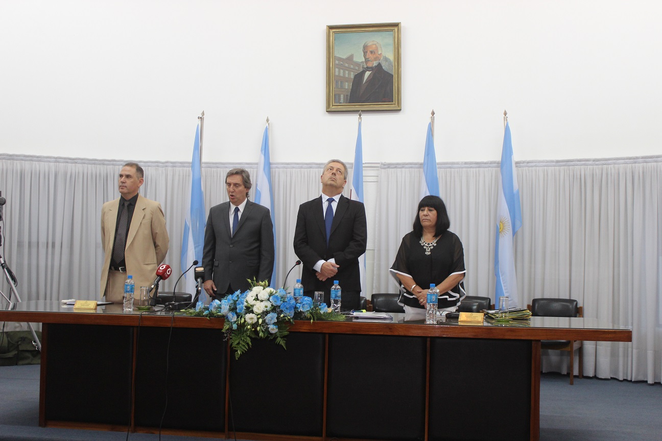 Tras la reanudación de la sesión especial del Concejo Deliberante que había comenzado en la mañana, se invitó a subir al recinto que se encontraba colmado de invitados al intendente. La Banda de Música de la Policía de Mendoza fue la encargada de ejecutar el Himno Argentino y luego sí, Félix pronunció el discurso.