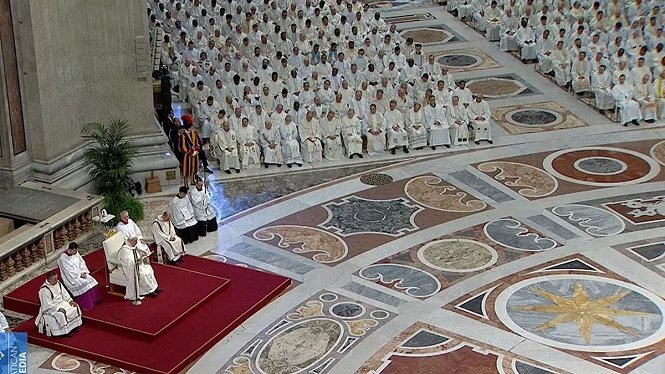 Francisco recordó y agradeció a los sacerdotes presentes el hecho de consagrarse a ayudar a los fieles y hacer llegar el mensaje de Dios.