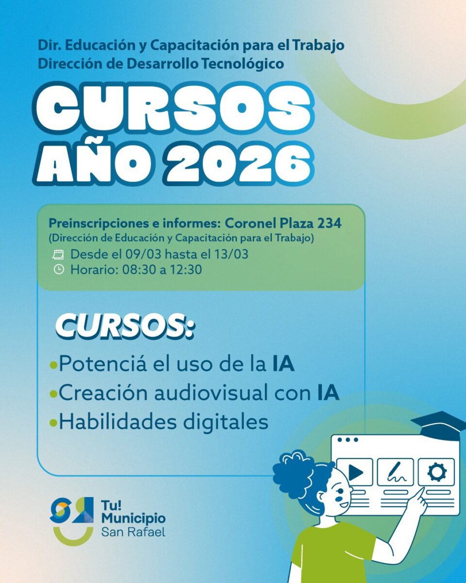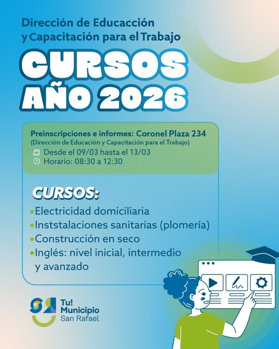 Con el objetivo de brindar propuestas de capacitación para el trabajo, el Municipio de San Rafael lanza una serie de cursos gratuitos de electricidad, plomería, construcción e inteligencia artificial.