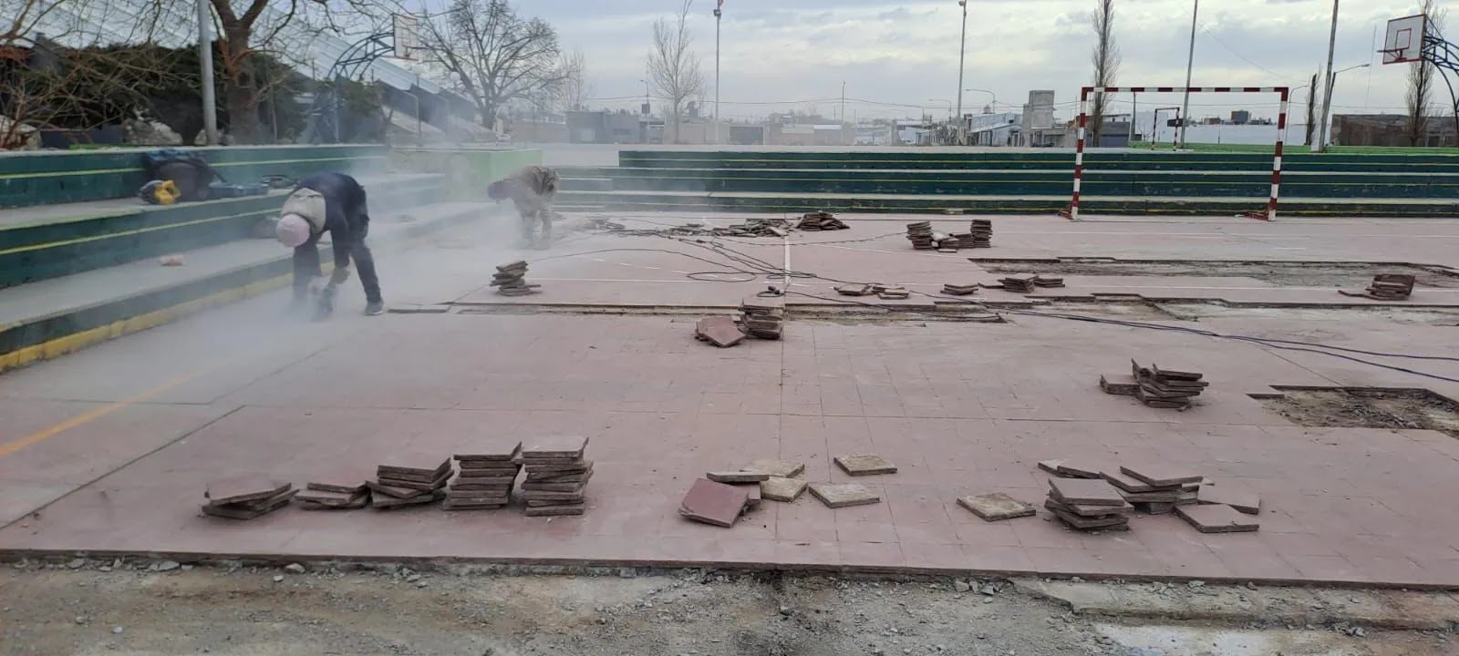 Por otra parte, en uno de los playones deportivos externos que tiene el Poli 2, se están recambiando las baldosas que permitirán mejorar la superficie para múltiples disciplinas que allí se desarrollan.
