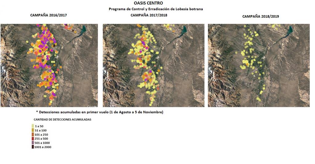 “Podemos asegurar que, con las capturas que hemos tenido en el oasis sur, se está libre de la plaga. Ha sido un trabajo que es innovador y muy efectivo, ya que en el 2016 teníamos 468 mil capturas y hoy estamos debajo de las 23 mil. En la zona sur la plaga está prácticamente eliminada, y está controlada”, aseguró.
