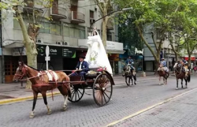Devotos de la fe católica o tradicionalistas de la fiesta máxima de los mendocinos comenzaron a compartir la fría foto o el silencioso video de la Patrona de los Viñedos en medio de una soledad casi absoluta por las calles de la Ciudad.