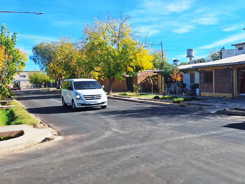 Tras realizar los pertinentes movimientos de suelo y tareas de imprimación, se llevó a cabo la colocación de la carpeta definitiva en las calles Cáceres Bordón, Espasandín, René Favaloro, Buscemi y Buenos Aires.
