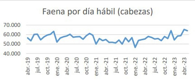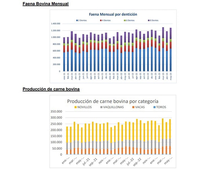 Esta mayor faena generó que en los primeros 5 meses de 2023 se produjeran cerca de 1,36 millones de toneladas equivalente carcasa; un 10,2% más que los 1,23 millones de toneladas obtenidas entre enero y mayo de 2022.