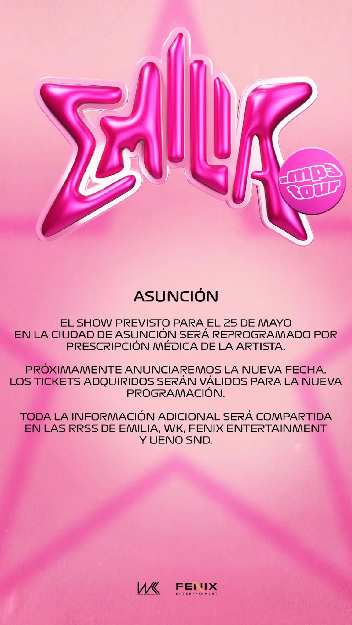 Los comunicados oficiales sobre la reprogramación de los shows de Emilia Mernes